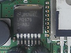 Общим питанием всего устройства заведует весьма неплохой стабилизатор (StepDown по-научному) LM2676 (National Semiconductor) - внешнее напряжение может быть от 8В до 40В. Поэтому, в характеристиках АвтоГРАФ гордо указывается именно такой диапазон питающего напряжения устройства. Выход - регулируемый (S-ADJ), ток на выходе - до 3А.