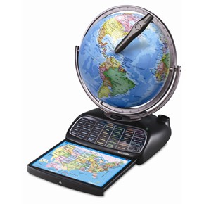 Да. Так вот, кажется, это "чудо" вообще бумажное и картонное, а все обновления заключаются в голосовом контенте (там памяти внутри 32 метра всего). Есть какое-то стило, которым можно указывать куда-либо и аппарат либо скажет, либо может в режиме урока попросить показать (город на карте, например). Сам аппарат работает только с PC, очевидно, там софт только под Windows. Занятный девайс, хотя я бы хотел увидеть нечто более технологичное - например с ЖК-экраном или проекцией какой... В общем, больше игрушка за 130 долларов. |