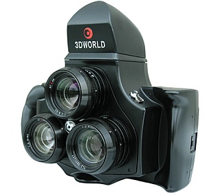 Изготавливает китайская компания 3Dworld. Не очень понимаю, зачем третий объектив, но выглядит внушительно. Пусть она даже ничего не снимает, но "для понту" такую штуку (вместе с нормальным фотиком) наверное, можно потаскать :) Правда, весит целы 2 кило. И на одной пленки хватает на 6 пар снимков. Видел здесь. |
