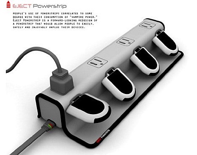 Eject powerstrip - это концепт "педалируемой" розетки. Чтобы выдернуть вилку, обычно сильно тянут за шнур, а тут - все просто - нажал, "оно и выскочило".