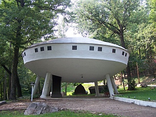 Дом в виде летающей тарелки и дом в виде... хм.. пардон, санфаянсового изделия :)