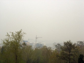 В Иркутской области сильные лесные пожары - дым даже в самом городе уже неделю стоит. К ночи вроде развевает, когда ветерок есть, а днем - всегда видимость - максимум метров 800. Запах дыма есть, но не везде сильный - за городом чувствуется сильнее, в городе - не очень. Съемки - 17 мая 2008 года.