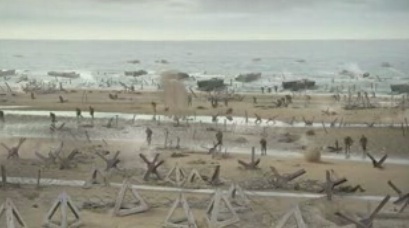 Всего несколько человек поехали на пустынный берег и там сняли немного "заготовок": три "солдата" немного побегали по пляжу, покарабкались на небольшие (картинка в центре) камешки - позади немного зеленого цвета для альфа-канала (можно использовать синий или зеленый). Потом уже на базе сняли взрывы на макетах (тоже на фоне зеленого альфа-канала) и смонтировали с наложением сцен и моделированием (дальние суда - комп. модель). В конце получился небольшой отрывок фильма. Без массовок, сложных трюков, каскадеров и т.п. Собственно, в этом нет ничего необычного, все это давно используется, просто интересно посмотреть как это делается.