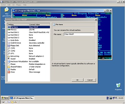 Графика летает, сетка работает (при простейшей настройке новой виртуальной машины указать Netwokr Interface, который будет "принимать" пакеты от виртуальной машины - короче, будет gateway - ну, и на самом настоящем компе кто-то должен разруливать через NAT, чтобы интернет ходил). В VMware несколько посложнее сетка сделана. Из приводов, кроме флопика, оптического дисковода и винтов виртуальная машина больше ничего из "наружи" не видит - но можно прицепить "virtual folders" - внутри это будет просто новым логическим диском (RW). А через сетку, все, разумеется, как обычно. Как настроишь, вернее. И еще один способ - одностороннее перетаскивание объектов с верхней ОС в виртуальную. Ну, это в VMware тоже есть. Эмулятор MSX под эмулятором запусить что-то не удалось - что-то не так. А прикольно было бы. Internet: пробовал тяжелые сайты на MSIE, Opera - скорость вполне приемлемая - не ощущается некомфортных тормозов. В общем, хороший вариант запихнуть образ винды (гига 3-4 со всем барахлом и офисом впридачу) на флэшку и оттуда запускать свою среду под чужой виндой. А можно и не винду - можно ubuntu там или MSDOS для особенных случаев :) Кстати, MSDOS со всякими прогами образ метров 15-20 получается всего. Выложил на rapidshare Portable вариант [15Mb] 32bit, build 6.0.156.0. (плюс внутри есть образ набора Virtual Machine Additions с инсталляцией shared folder для виртуальной машины). |