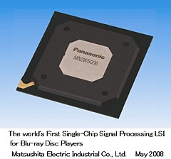 Panasonic разработал первый в мире single chip процессор для преобразования сигнала лазера в AV сигнал. Из оригинала: "... for BD, DVD, and CD media, and standards including MPEG-4 AVC/H.264 and VC-1; high-quality audio playback compatible with lossless coding; and dual-screen simultaneous video playback including high definition video, and a high-performance and high-speed graphics engine technology which enables not only 2D graphic processing but also 3D graphic processing or curved surface drawing". |