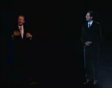 Только вот один из них (Мартин - справа) был в виде голограммы. Эффект присутствия - полный. Во время трансляции были видны небольшие артефакты в виде полупрозрачности рук, подергиваний изображения и расфокусировки. Занятно, занятно... Кажется голографическое телевидение из разряда фантастики приходит в жизнь. Тем более, что этим плотно занимается CISCO и английская компания Musion Sys.