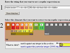 Не скажу, что сервис отличается практичностью, но идея заложена здравая и реализация вроде неплохая, но как-то несколько однобокая что ли... В общем, здесь, наборот, - пишем строку символов, из которой надо что-то выделить. А потом по разобранному шаблону строим Regexp. Сразу выдается код на полутора десятке языков - от перла до vb.net. ссылку прислал Dmitri K |