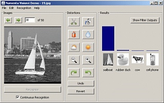 Это разпознавание образов в картинках. Пока сделано только четыре образа: парусник, утка, корова и сотовый телефон. Объект на картинке не выделяется. Т.е. только распознавание. В комплекте идет несколько десятков картинок с разным изображением всех шаблонов - от фоток до нарисованных. Фотки есть весьма сложные - например, корова в фас - вот не очень тривиально ее выделить и распознать на самом деле. Попробовал на своей куче картинок. У меня конечно в фотках не уток и парусников, но несколько сотиков попалось. Распознала, чтобы вы думали! :) В общем, это интересный задел. Тем более, что на сайте лежит еще одна демка (только для винды), которая распознает примитивы фигур, причем, сама прога уже по интернету соединяется с кластером в Калифорнии, который помогает ей в распознавании. ссылку прислал Keks |